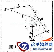 栽植机在进行栽植工作时,栽植机构进行栽植的同时栽植机还需要进行直线运动。因此,秧针的实际运动是栽植机构运动和栽梢机直线运动的合成运动。栽植机构为典型的曲柄摇杆机构如图1中AB为曲柄,EBG为连杆即栽植臂及秧针、DC为摇杆、AD为机架。机构运动是曲柄AB为原动件以角速W绕点A逆时针作匀速圆周运动。