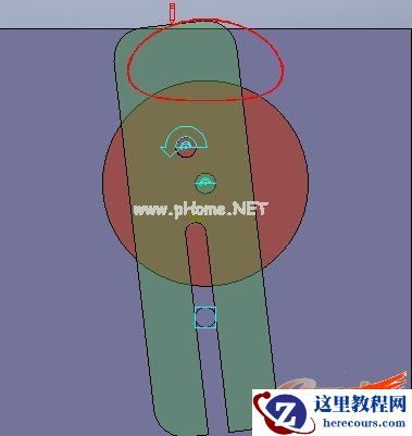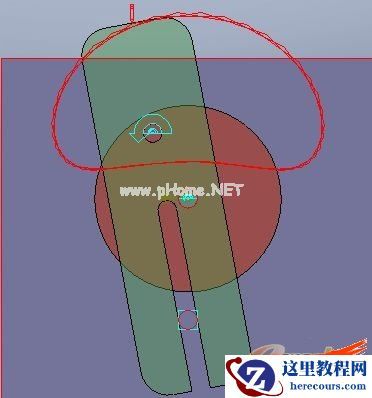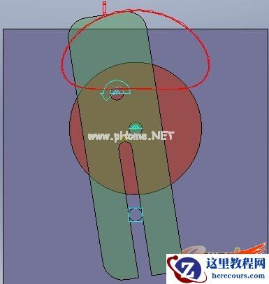如下图,这个简化的送标机构模型由三个零部件组成,分别为底座,圆盘,运动杆。