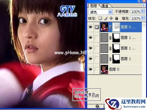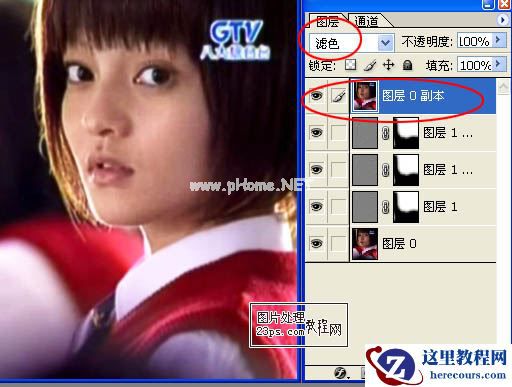 10、将此图层推至最上面并将混合改为滤色。