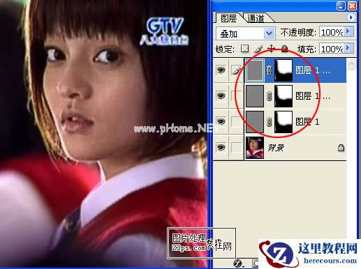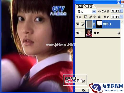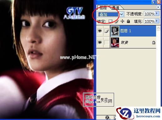 3、将图层的混合方式改为“叠加”。