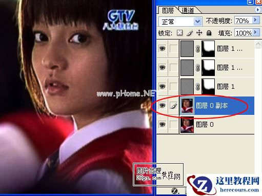11、点击图层0副本,添加蒙版,将黑笔的透明度调低,将眼睛部分和其他需要清晰的地方涂一下。
