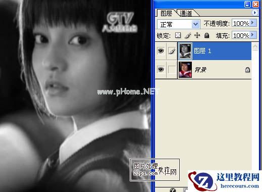 2、选中图层1,点击图像-调整-去色。