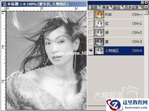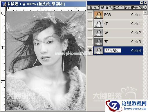 步骤三、复制G通道(绿色通道)为绿色通道副本,并改名为“人物选区”(双击通道名称部分即可更改)