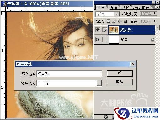 步骤一、复制该图片至副本层,改名为披头氏,并将背景层填白色(也许你会奇怪,为什么要多这一步?这是我个人的习惯,总喜欢把要处理的图片在一个新图层上)。