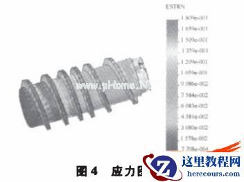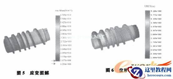 螺杆工作时螺杆在与驱动轴配合联接处受到径向约束,止推轴肩处受到轴向约束,即螺杆的右端面X.Y,Z方向的位移约束均为O.所以约束类型选
