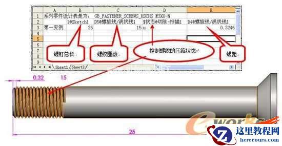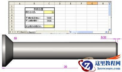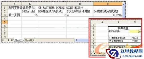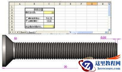 公式意义:螺钉总长尺寸与Sheet2上的C3单元格数值相关联