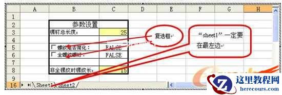 公式意义:如果Sheet2上的"全螺纹螺钉"复选框选中则自动计算螺纹圈数