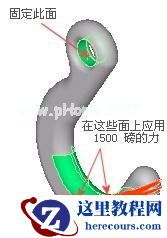 挂钩由合金钢建造,在孔处固定并装载有1500 磅的力,如图所示。