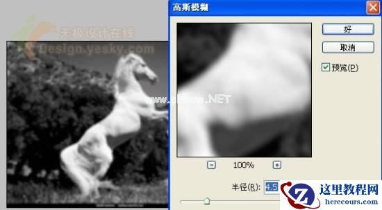 图04 在弹出的高斯模糊对话框中设置半径为4.5像素