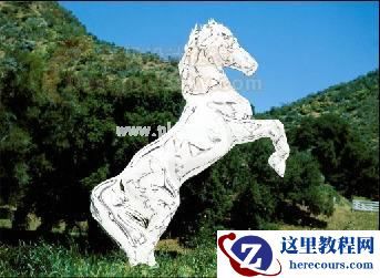 2、激活通道面板,复制一个比较清晰的通道,将其命名为Alpha 1通道,将马的外轮廓选择出来,如图03所示。