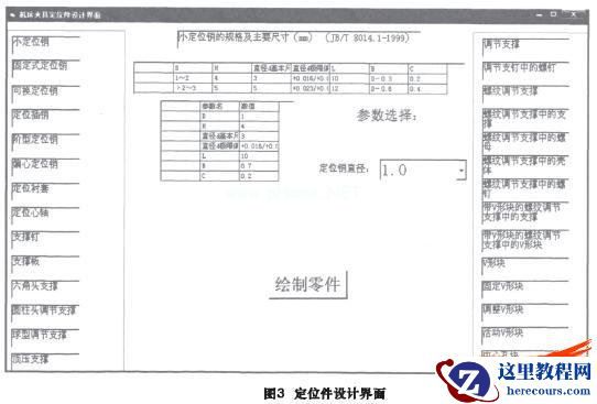 机床夹具零件的通用性比较好,就像标准件一样,因此我们可以利用Access建立机床夹具定位件的各种元件的尺寸数据库(如图2所示),然后利用VB编程设计出来一个设计定位件库的界面(如图3所示),在这个界面中利用制定好的数据库中的尺寸来驱动建模,从而在SolidWorks界面中生成需要的定位件。