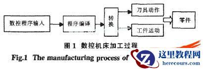 数控机床进行加工时,首先要能够识别由数控编程人员编写的或由CAD/CAM程序生成的零件加工程序,将程序分解成机床部件的相关动作,控制刀具和工件的相对运动,从而加工出所需零件,其过程如图1所示。在建立虚拟数控机床模型时,为追求身l临其境的逼真性和超越现实的虚拟性,虚拟数控机床应满足以下要求: