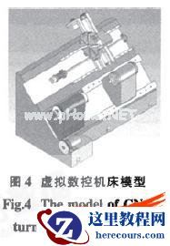 虚拟装配是根据产品设计的形状特性、精度特性,真实地模拟产品三维装配过程.并允许用户以交互方式控制产品的三维真实模拟装配过程,以检验产品的可装配性闱。在对数控机床的床身、床鞍、主传动系统、进给传动系统、装夹系统分别建立模型。并虚拟工件和刀具的基础上。可利用虚拟装配技术.得到虚拟数控车床模型。图4给出SSCK3220数控车床的简化的虚拟机床模型。