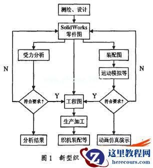以SolidWorks为主要设计软件,绘制出织机所有的零件图,然后进行装配,并生成部分需要的工程图用于指导加工。主要的实施流程见图1。