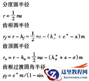 由于渐开线行星齿轮减速器靠齿轮的啮合来传递运动与动力,齿轮的参数化建模最为关键。齿轮齿廓由渐开线、过渡曲线、齿根圆、齿顶圆几部分组成,并不是连续的曲线,所以在绘制过程中也需要这几种曲线的组合。渐开线齿轮这几部分的几何尺寸都是由齿轮的模数m、齿数z、变位系数省决定的,是独立变量,因此应将m,z,x作为驱动尺寸。则渐开线齿轮零件形体尺寸即相关变量可用如下参数化模型表达。