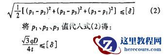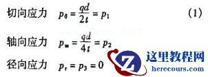 在薄壁圆筒结构中。在相对于P1、P2的第三个方向上作用于内壁的内压力q和外壁上的大气压力都远小于P1、P2(可以认为是零)。主应力为p1、P2、P3,且PI>p2>p3,根据第四强度理论的强度条件,有