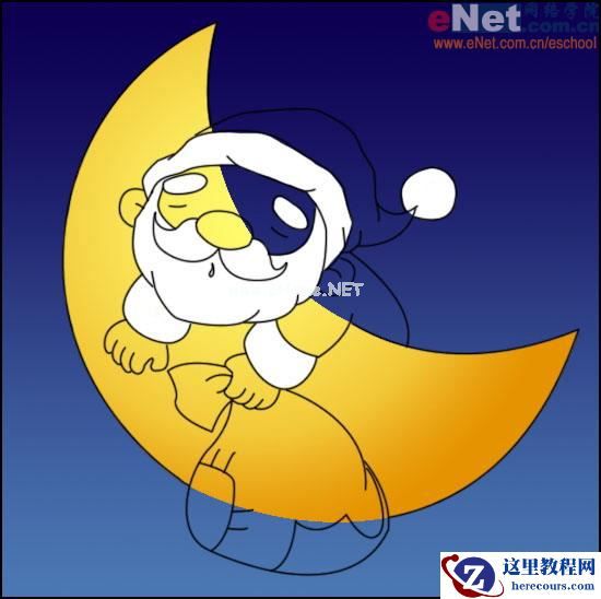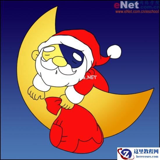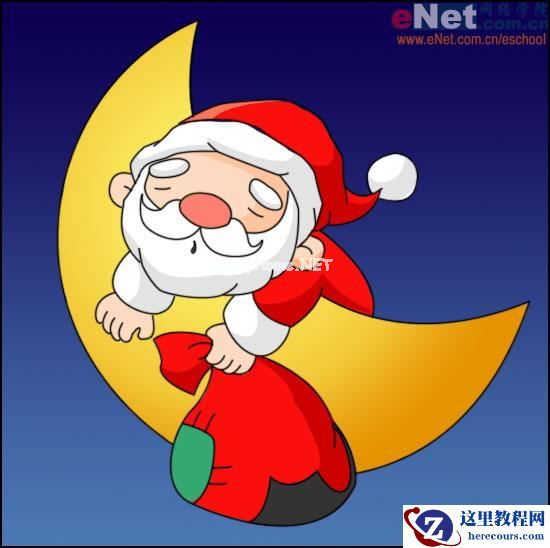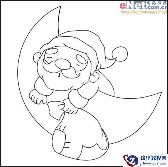 勾出月亮与圣诞老人