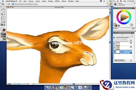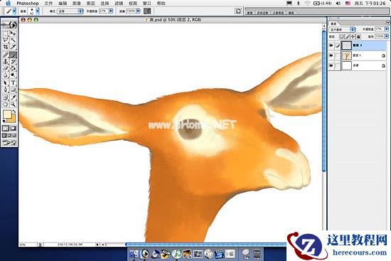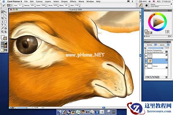 呵呵!回答很简单:因为PT比PS多了旋转的功能,为了方便画毛发所以就到PT里画了!当然,只在PS也可以,但麻烦一点!