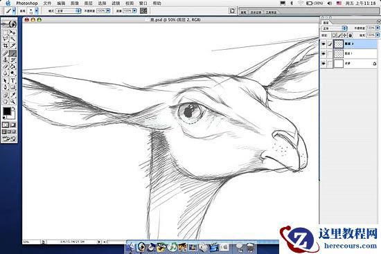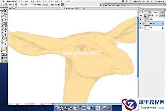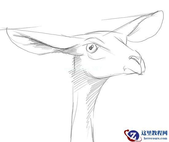 2.接着像画素描那样,将动物面部的转折用线条排出来!