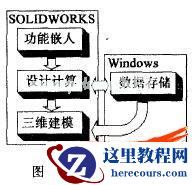 任何支持 OLE(对象链接与嵌人)和COM(组件对象模型)的编程语言例如VisualBasic,Visual C++都可以作为SolidWorks的开发工具。SolidWorks为用户提供了强大的二次开发接口(API),其中包含有数以百计的功能函数,这些函数提供了程序员直接访问SolidWorks功能的能力。SolidWorks二次开发分为两种:一种是基于自动化技术的,可以开发EXE形式的程序,即外挂式的;另一种是基于COM的,可以生成*.dll格式的文件,即内寄生式的。采用VC++作为开发工具进行开发的步骤是:首先,从SolidWorks公司的网站上下载向导文件Swizard.awx,将其复制到bficrosoft Visual Studio Common MSDev98 Template目录下;然后在Visual C++中用该向导创建D几工程,加入相关代码,编译生成*.dll文件。用户只需要通过命令"Add-Ins (*.d11)",加载自己的DLL,就可以将必要的用户程序输出。