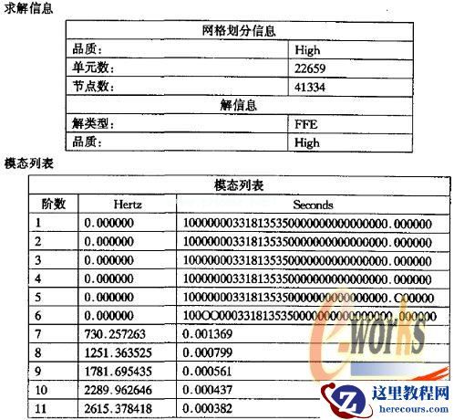 具体对COSMOS/Works6.0的频谱分析,首先要对研究的项目进行性质定义。由于是进行谱分析,即求解问题的特征值,不需外加各种约束我们对QKS17-2000-01外壳零件进行了两次分析,第一次选择材料2014Alloy,第二次选择2018Alloy两次分析的结果如下: