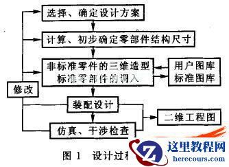 应用SolidWorks进行设计,需要选定设计方案,进行零件和装配体的建模,经过检验之后要输出适合工厂使用的二维图纸.其设计的一般过程和方法,如图1所示.
