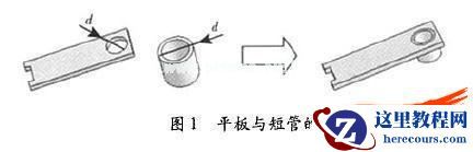 由几十个零件组装而成,其中不可避免出现相连接零件间的零件尺寸关联。如果仅仅将各个零件的尺寸参数输人数据库,不仅数据增多,而且容易造成零件装配出错,见图1。平板与短管装配时,平板卜孔直径与短管外径相等,那么只要确定其中一个d值,就可以同时确定两个尺寸。取平板上的d值,那么对短管,只要确定短管壁厚占和长度1,就可以绘制出短管的三维图形。