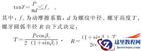 WZ01型外螺纹钢管轧机按辊径不同分为 D150、D270两个系列,分别对应加工 Φ25~Φ45、Φ45~Φ70的钢管。轧辊螺纹孔型与以下几个参数有关:螺纹螺距 P、轧件成形角 β1、辊齿牙型斜角 β2、螺牙高度 T、螺牙圆弧半径 R、辊齿螺旋升角 γ。轧辊螺纹孔型结构见图 2。为了满足轧件外螺纹在工程使用中的自锁要求,螺纹螺距 P必须满足下式要求: