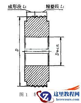 外螺纹锚管的斜轧工艺和变形非常复杂,轧件要在三个轧辊组成的三维空间中做螺旋运动。WZ01型外螺纹钢管轧机的单个轧辊的结构见图 1,其主要包括两个支撑端、辊体以及辊体上的辊齿。该辊辊齿采用圆角左旋螺纹,分为成形段和精整段。