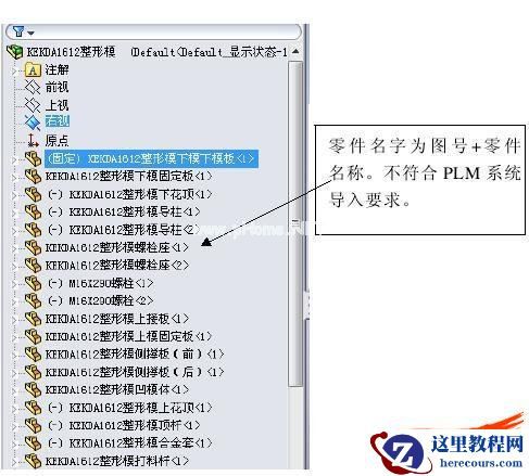 把文件名字拿掉后,只剩下图号,习惯改变,在多零件时,难以判断零件的类型和种类,难以迅速定位零件。下右图。显示零件说明后(下左图)通过上面的左右图可以看出,与直接的零件名称显示相比,显示零件说明可以替代在零件名字中命名零件名称,减少零件名字的复杂程度和不规范性,统一编码,便于 PMD/PLM等相关系统的实施。