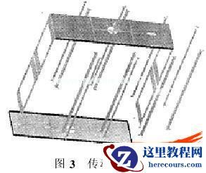 在装配设计中,采用自顶向下的设计思路,将高方平筛分为筛箱、传动架、横梁、转轴和偏重块几部分。每部分均采用自底向上的设计思路,将零件装配成筛箱装配体、传动架装配体(图 2)等,最后在总装图中进行装配,这样快捷、方便且效果很好。