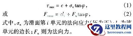 若土体平衡时滑动面单元 (节点)的切向力 Fr大于可能产生的最大切向力Frmax,则属于滑动型,否则属于固定型;若法向弹簧力为拉力,则属于张开型。