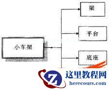 目前模块化设计方法主要有结构分析法和功能分析法两种。前者适用于零部件结构特征相对明显的产品,而后者适用于零部件功能相对独立的产品,属于较高的层次。对于小车架这种功能独立,本身有层次的产品而言,比较适合采用功能分析法对其进行产品模块族的划分以及产品功能模块模型的建立。通过与用户的多次交流,确定了小车架的模块划分原则是:①保持各个模块在功能和结构方面有一定的独立性和完整性;②各个模块间的接口要素便于联接和分离;③模块与模块之间的相关尽量的少;④模块分解的粒度要适中。