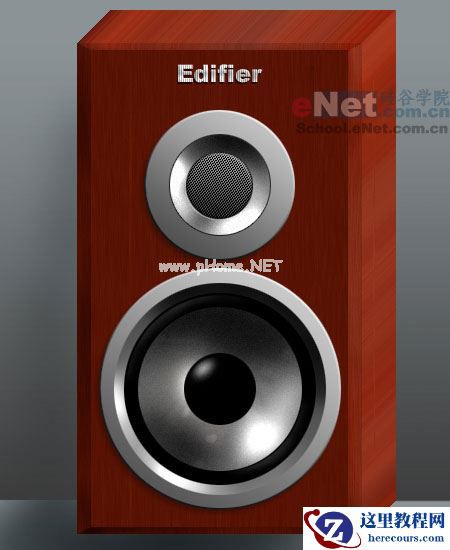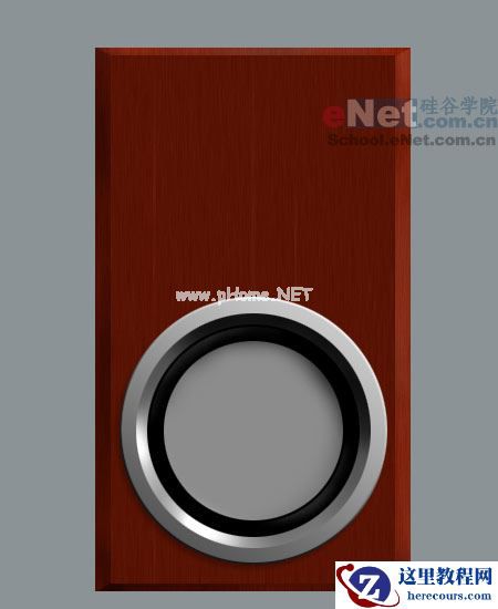 3.建立一个新的图层,然后在箱体的中心靠下方的位置建立一个正圆选区,在设置前景色为#A0A0A0并填充选区,然后按CTRL+D取消选择。接下来设定图层样式,分别设置如下: