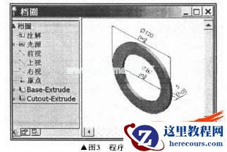 编译并执行所有代码,输人设计参数,按OK安钮,即刻启动Solidworks绘制出用户需要的任意尺寸的三维档圈模型(如图3)。