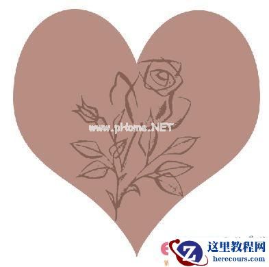 3、新建“图层2”,选择工具箱中的“钢笔工具”绘制如图02所示的选区,设置前景色的RGB分别为184、142、130,填充颜色效果如图03所示。按“Ctrl+E”键,合并图层2到图层1。