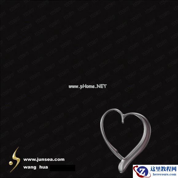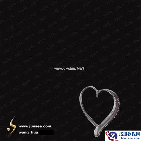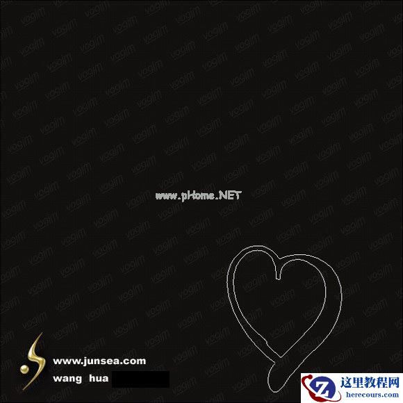 2.新建图层1,用工具条中自定义形状中的心形形状来拉一个心形,并用钢笔工具按住CTRL来拖动上面的节点调整一下它的形状,形状调不理想的话,可以添加一些节点后再作调整,(图1)。