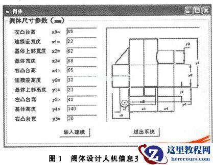 在应用程序的开发中,为了让设计者能够根据自身经验更好地实时控制整个箱体类零件设计过程和进度,采用了对话框的形式来完成计算机和人之间的信息交流。以阀体为例,设计过程中的信息交流界面构成见图1。整个应用程序的运行结果-阀体零件的三维实体浩型见图2。