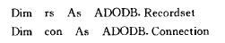 ADO是Microsoft数据库应用程序开发的新接口,是建立在OLE nB之上的高层数据库访问技术。使用Ano技术在vB中检索和读写数据的程序如下: