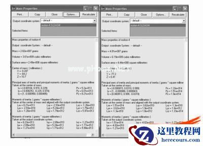 SolidWorks软件可以根据添加材料的比重,自动输出其物理特性。其中包括重量、重心、对重心的转动惯量和对坐标原点的转动惯量等。对内、外环每个摇摆体进行独立分析,分别输出物理参数。若重心位置不合适,可采用添加配重或更改结构尺寸的方式调整,利用SolidWorks尺寸驱动功能,立即可得到结果,直至满足要求。此物理特性可作为设计计算的依据。在以前手工计算,要几个人用几周的时间,而在这里瞬间即可完成,大大提高了设计效率。输出结果如图 3所示。