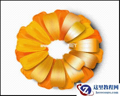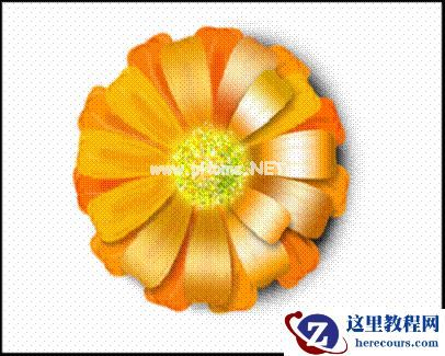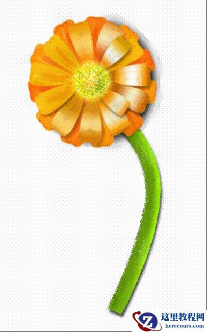 13、花朵就这样做好了,再用钢笔工具勾勒出竿的形状,给出明暗,在图层效果里面给出投影,最终结果如下图。