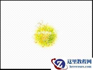 11、选择画笔工具,调好画笔和前景色,分别在黄色低层上点按上绿色,深黄色和白色。