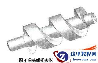 这样我们就可以从一个己生成的圆柱体上作切除螺旋扫描得到单头螺杆实体造型。如图4所示。