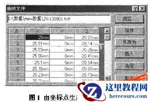 这时,通过"浏览"按钮找到并读入坐标文件,点击""插人"即生成了通过XYZ点的曲线,如图2所示。