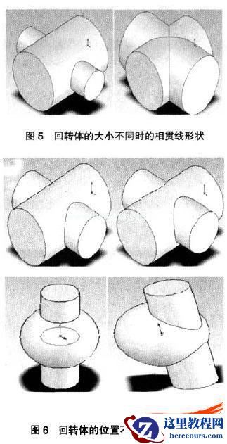 在工程制图中常见到两回转体相交的问题,两回转体表面相交产生的交线叫相贯线.由于相贯线的空间形状复杂多样,在教学中相贯线部分一直是一个难点.影响相贯线形状的因素有气个:回转体的形状、大小和相对位置.在课堂上,利用模型库中的各种回转体相交的模型,学生很容易理解影响相贯线形状的第一个因素:即回转体的形状不同会导致相贯线形状变化,但是对于回转体的大小不同或相对位置变化也会影响相贯线形状却不好理解。