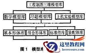 基于Solidworks软件平台开发三维模型库,主要采用模块式设计方法,按照教学功能分类、分单元进行,各单元模型的建立与选择既考虑到模型的典型性,又要考虑模型之间的相互联系和循序渐进.为此我校针对不同专业的特点和要求,建立相应的专业标准件模}"库和装配体模型库.模型库的主要结构如图1所示.
