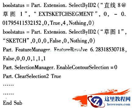 (3)基于VB的。olidworks二次开发,最重要的是程序代码的编写。代码可以完全由开发者写人,即完全用程序实现三维模型的参数化设计以及模型的编辑,这种方法编程较为复杂,但可以实现对具有复杂形体的零件造型,这种方法要求开发者对solidworks API函数非常熟悉,但是solidworks API函数有几百个之多,对于初学者往往不容易掌握。一个简单实用的方法是先录制使用solidworks用户界面执行的操作,即录制宏,获得宏操作代码,将其复制添加到程序所需部分,然后编辑修改以达到程序要求,通过程序驱动设计变量实现模型的建立和更新,这种方法编程较简单,通用性好。