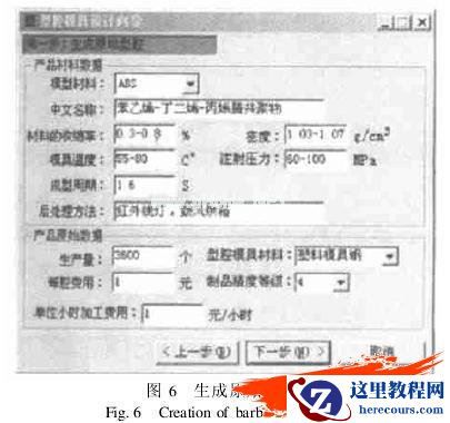 (3)模具设计向导第二步(图6):输入产品基本信息,提取材料信息:包括生产量、模具精度、模具材料等,生成模具原始型腔.