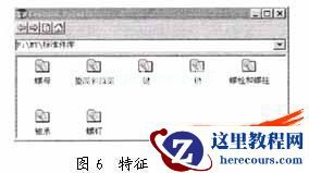 打开 Microsoft Excel 并生成一个工作表。在工作表的第一列(行标题单元格 A3、A4等)中,输入您想要生成的配置名称。本例以螺栓的公称直径为配置名,保留单元格A2为空白。在工作表的第一行(列标题单元格B2、C2等)中,输入我们要控制的螺栓各基本尺寸变量名,再将图4中输出的尺寸数据通过Excel的数据导入功能输入到该工作表,以上过程参见图4及图5,将该工作表(即系列零件设计表)保存后插入到已建模完毕的螺栓模型文件中,即可得到从M6-M24的一系列螺栓3维零件模型。运用以上方法分别建立各类标准件模型文件后按目录分类储存在硬盘上,即可得到标准件库。在装配模型中通过Solidworks中的特征模板浏览器(如图6)即可查询、调用各种标准件,而更改同一类零件的不同配置就可以生成具有不同尺寸的符合国标的三维参数化标准件实体模型。