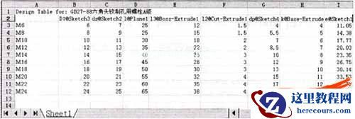 基本尺寸之间的参数关系,将尺寸参数(变量)与尺寸之间的对应关系生成一个与标准件模型相联系的系列零件设计表文件。系列零件设计表文件可以是外部插入的Excel文件也可以是嵌入到标准件模型内部的Excel文件。在这里我们采用外部插入的方式,这样可以大大减少标准件模型文件尺寸。